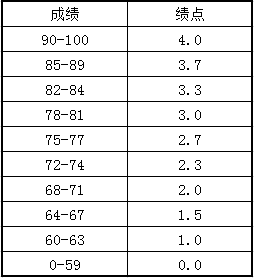 即 GPA=[(成绩x学分值)x 4] / [学分值总和*100]