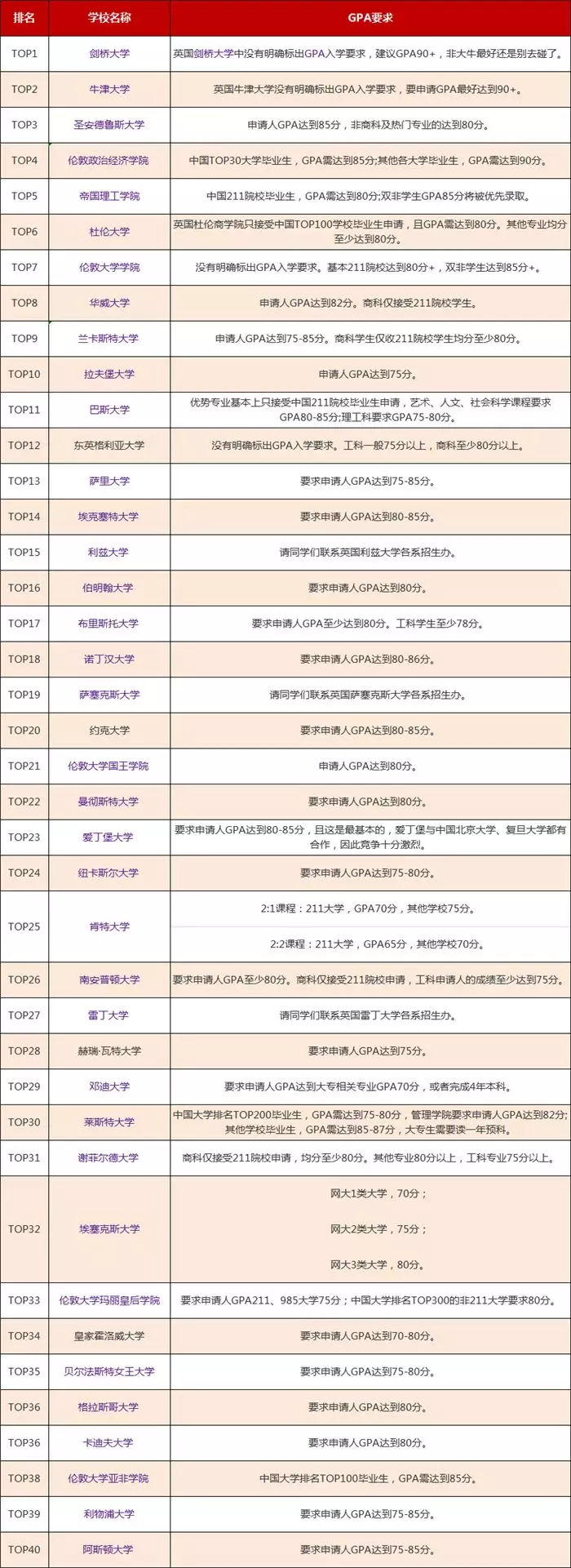 一般来说,GPA是上一个教育阶段最直观的综合表现。英国大学把它作为一个指标,因为它能在一定程度上反映学生的学习能力和自我管理能力等。虽说国外的大学注重的是学生的综合实力,但也不是说你的标化成绩就只是刚好达到标准线,尤其是想进入英国名校的学生,分数不是一流的高的话,那你怕是要和名校擦肩而过了....