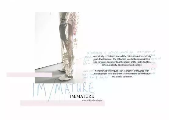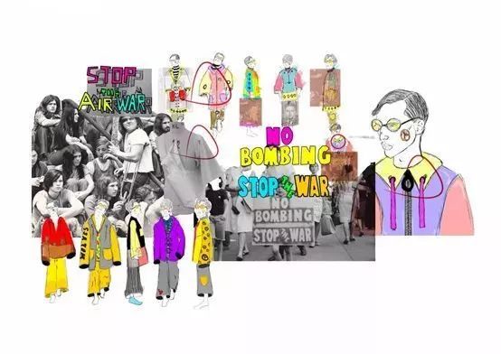 MEERA POPAT的服装作品灵感来源于嬉皮士,作品的风格呈现出比较活泼、鲜艳、夸张的特质,所以在字体的处理上MEERA直接使用了自己的手画字体,大小不一的形态,随性任意的摆放,使她作品的主题风格也更加突出。
